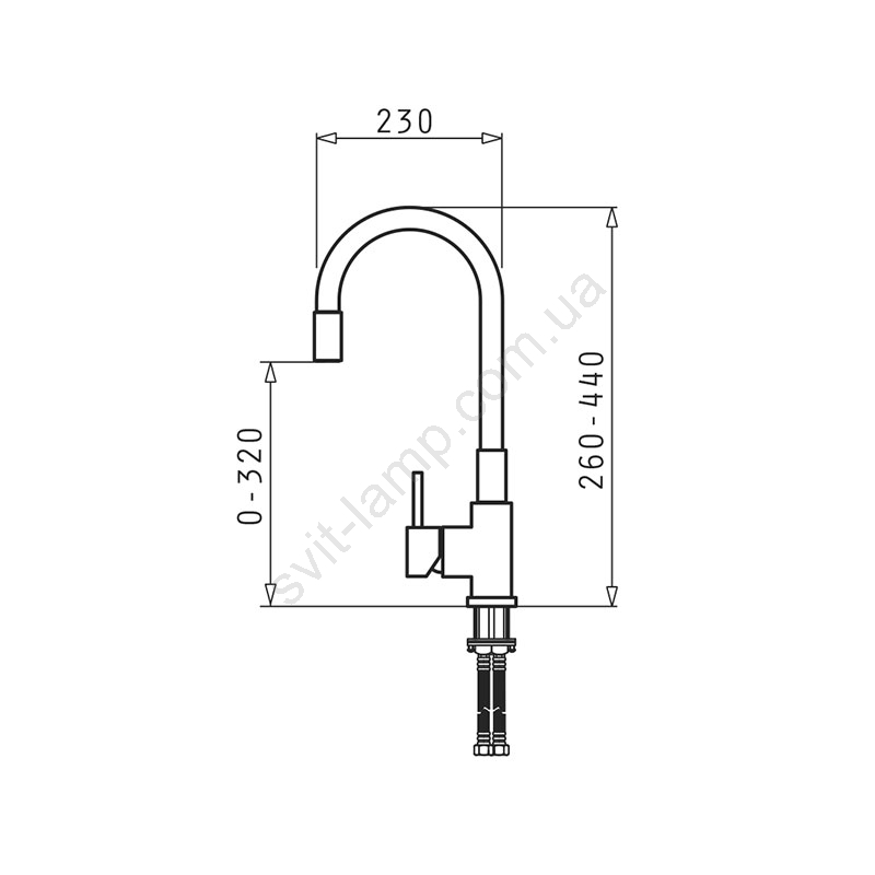 • Общая высота 260-440 мм – идеально подходит для широкого спектра раковин и кухонных пространств.