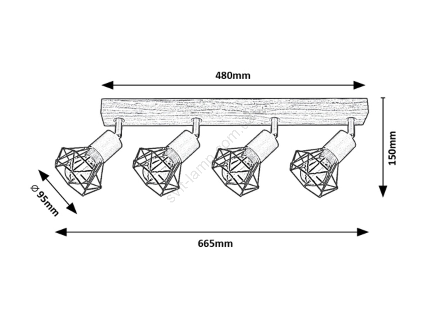 Точечный светильник Zeus с 4 лампами в индустриальном стиле рекомендуется для разных комнат в вашем доме: вы можете установить его в гостиной, столовой, кухне или даже в спальне. Светильник изготовлен из металла и дерева и может быть закреплен на стене с помощью удлиненного квадратного декоративного основания из дуба. Решетчатые абажуры характерной формы выполнены из металла в черном матовом цвете. Светильник Zeus можно использовать с четырьмя лампочками мощностью до 40 Вт каждая. В зависимости от вашего вкуса и помещения, в котором вы установите светильник, вы можете выбрать источник света теплого или естественного белого цвета. Благодаря гибкой головке лампы эта модель может эффективно осветить всю комнату. Размеры точечного светильника Zeus 4 bulb следующие: ширина 665 мм, высота 150 мм, расстояние от стены 150 мм. Данная модель поставляется без источника света. Использование натуральных материалов придаёт каждому изделию неповторимый вид. Характерные черты дерева с сучками и текстурой гарантируют уникальность каждого изделия, поэтому оно может не полностью соответствовать фотографиям. В связи с этим мы хотели бы отметить, что жалобы по поводу отличий древесного узора не принимаются из-за разнообразия используемого природного материала.