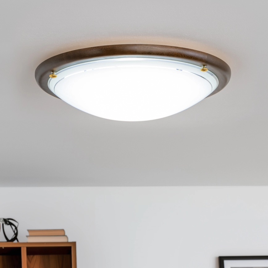 Rabalux - Потолочный светильник 2xE27/60W/230V диаметр 38 см характеризуется хорошим дизайном и функциональным исполнением. Для светильника предназначена лампочка с цоколем E27. Здесь Вы можете купить другие лампочки по выгодной цене. Таким образом, Вы получите интересное дополнение к своему дому. Использование натуральных материалов придаёт каждому изделию неповторимый вид. Характерные черты дерева с сучками и текстурой гарантируют уникальность каждого изделия, поэтому оно может не полностью соответствовать фотографиям. В связи с этим мы хотели бы отметить, что жалобы по поводу отличий древесного узора не принимаются из-за разнообразия используемого природного материала.