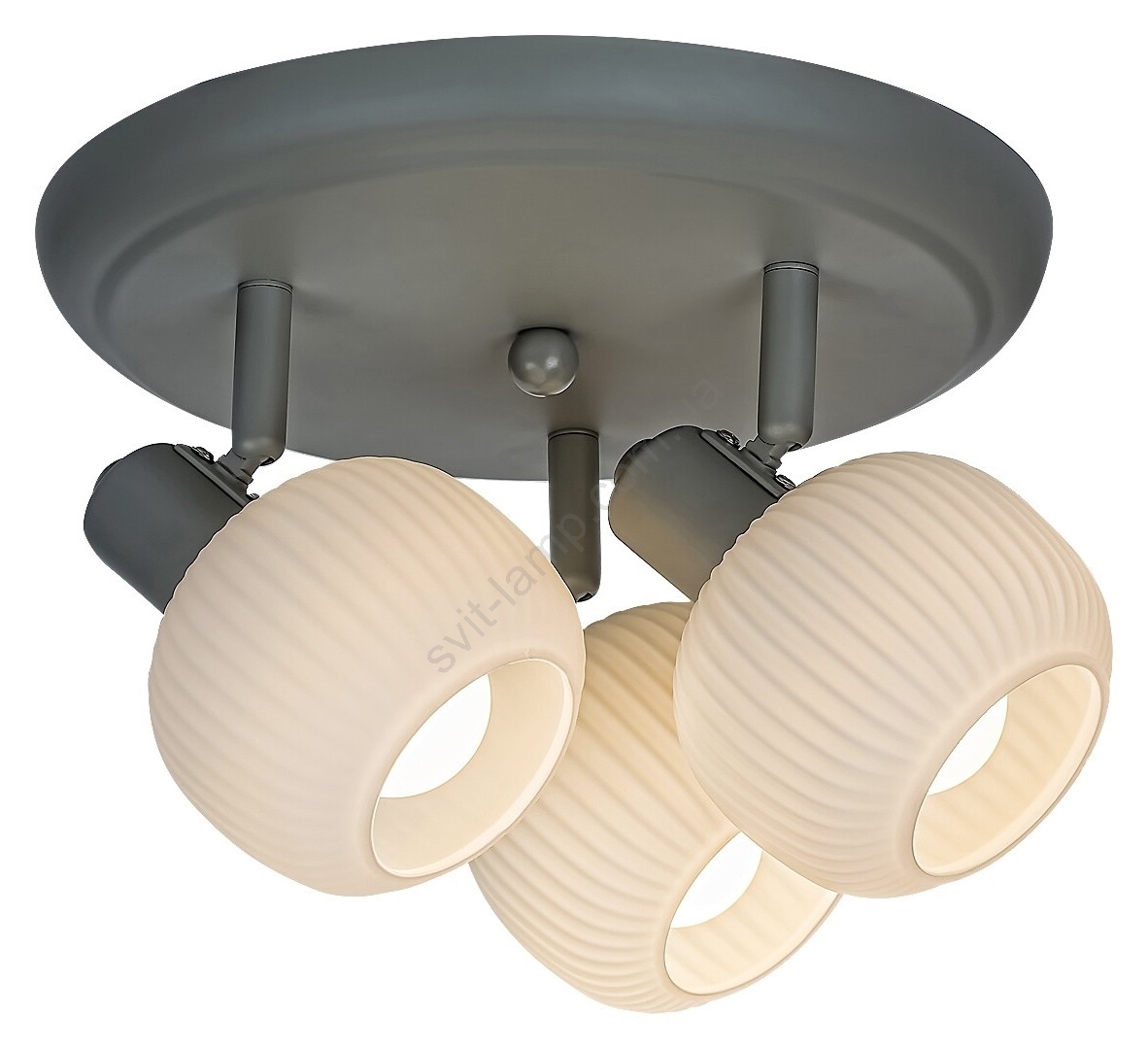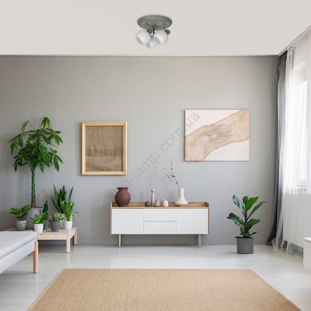 Тройной точечный светильник Soraya в скандинавском стиле станет популярным предметом мебели в вашей гостиной, спальне, столовой или даже на кухне. Серый металлический светильник дополнен белыми стеклянными абажурами, светильник можно закрепить на потолке с помощью большого круглого декоративного основания. Ребристые абажуры круглые и открытые снизу. Благодаря трем гибким головкам этот точечный светильник может прекрасно освещать помещение во всех направлениях. Светильник Soraya можно использовать с тремя лампочками мощностью до 40 Вт каждая. Чтобы создать в комнате интимную, уютную атмосферу, выбирайте для этого светильника источники теплого белого света. Если вы предпочитаете чистый, современный эффект, используйте лампочки с естественным белым светом. Размеры тройного точечного светильника Soraya таковы: диаметр 300 мм, расстояние от потолка 150 мм, диаметр установки 250 мм. Данная модель поставляется без источников света.
