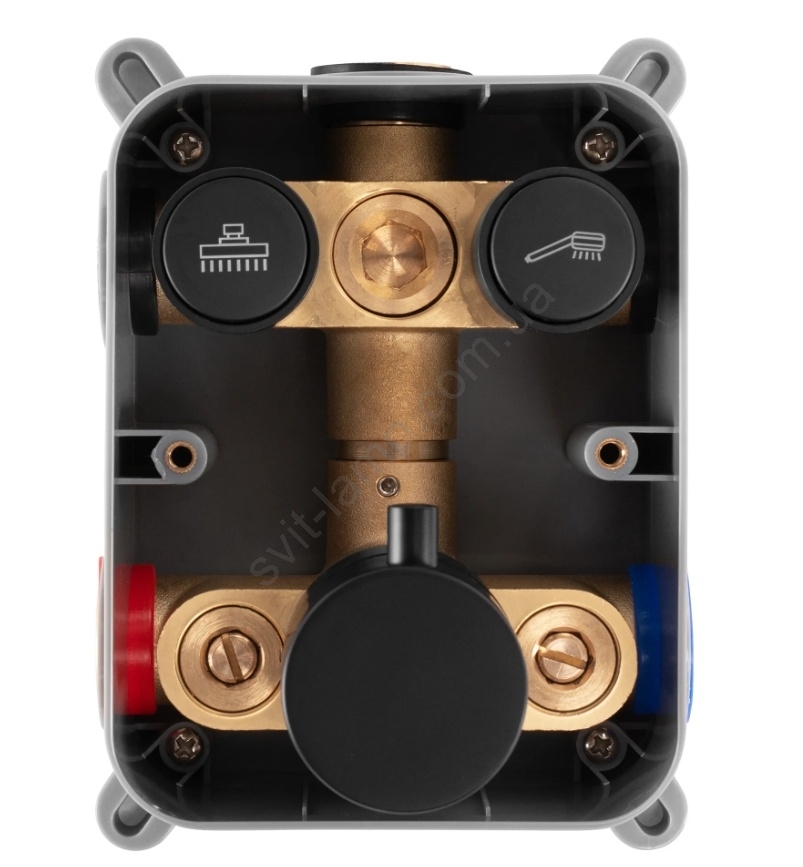 • В комплекте: встраиваемый монтажный бокс, комплект смесителя, кронштейн, ручной и верхний душ, держатель для ручного душа, шланг 150 см.