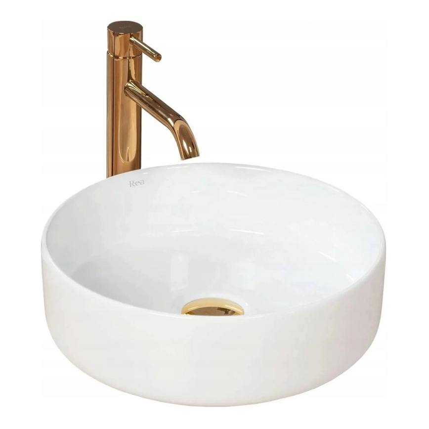 • REA-U6630 - Накладная раковина SAMI, диаметр 36 см, керамика/белая/брашированное золото