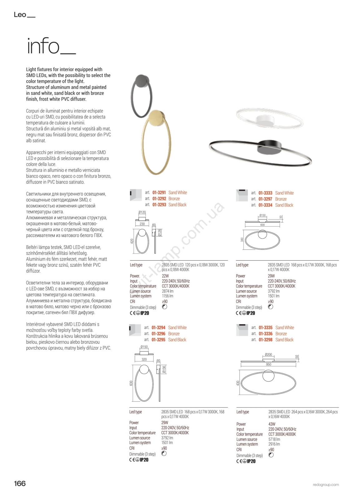 Redo 01-3338 - LED диммируемая люстра на тросе LEO LED/48W/230V 3000/4000K CRI 90 40x95 cm бронзовая