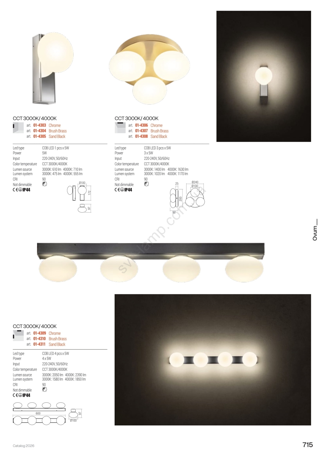 • Redo 01-4308 - LED потолочный светильник для ванной OVUM, 3×LED по 5W, 230V, 3000/4000K, CRI 90, диаметр 24 cm, IP44, белый/чёрный
