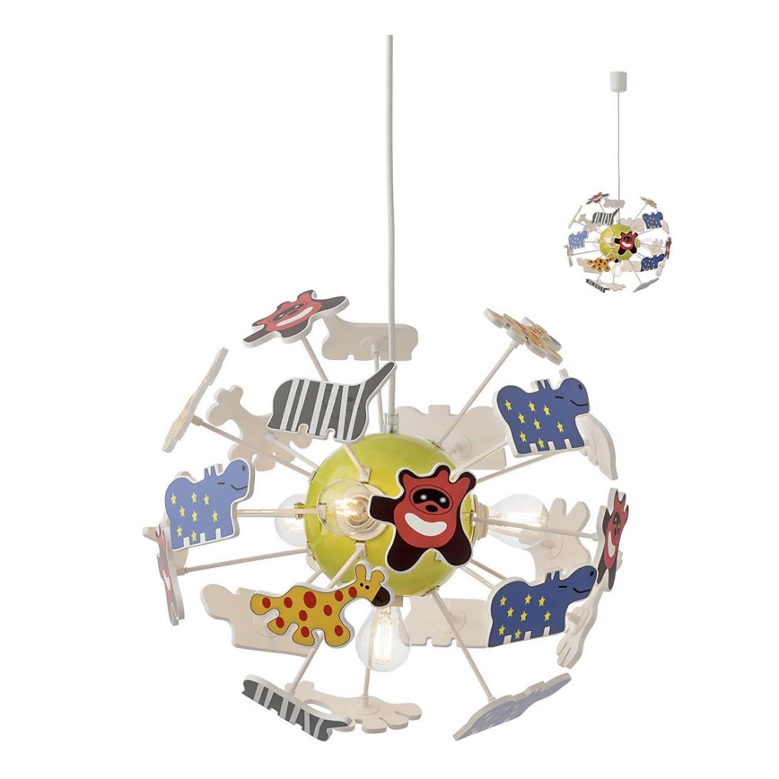 Redo 04-515 - Детская подвесная люстра SAFARI 4xE14/28W/230V диаметр 35 см красочный