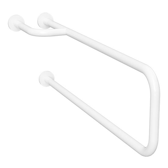 • Опорный поручень белого цвета для безопасного передвижения в ванной.