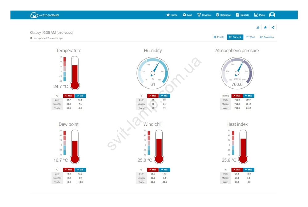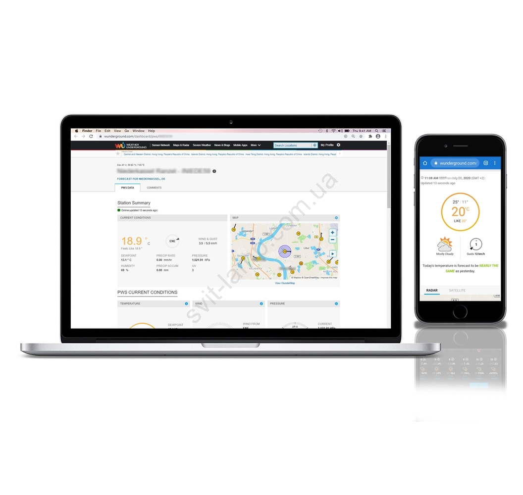 • Поддерживает онлайн-доступ к истории, данным и глобальным общественным метеорологическим платформам «Weather Underground» и «Weathercloud».