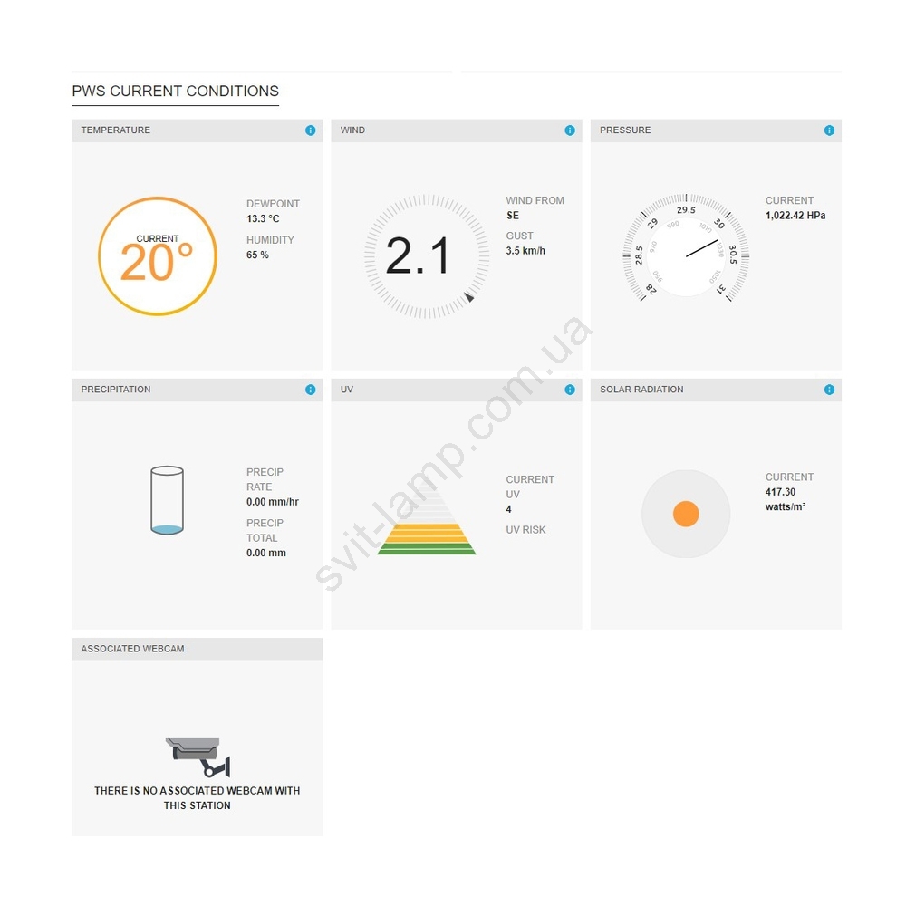 • Датчик измеряет скорость и направление ветра, осадки, температуру, влажность, интенсивность света и УФ-излучение.