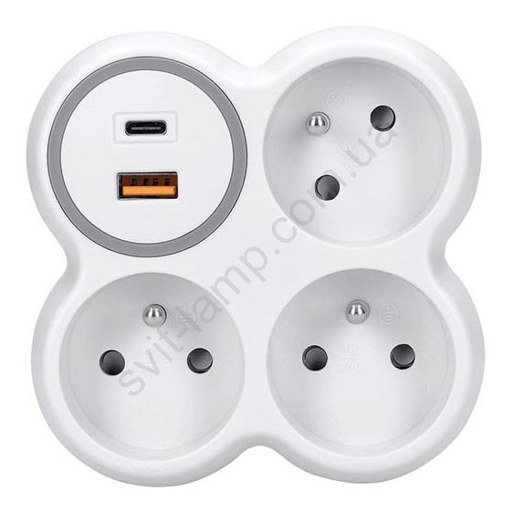 Разветвитель 3x 16A + USB A+C быстрое зарядное устройство 20W