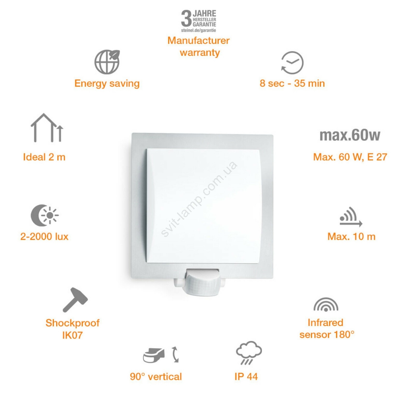 Steinel 566814 - Уличный настенный сенсорный светильник 1xE27/60W/240V L 20 S IP44