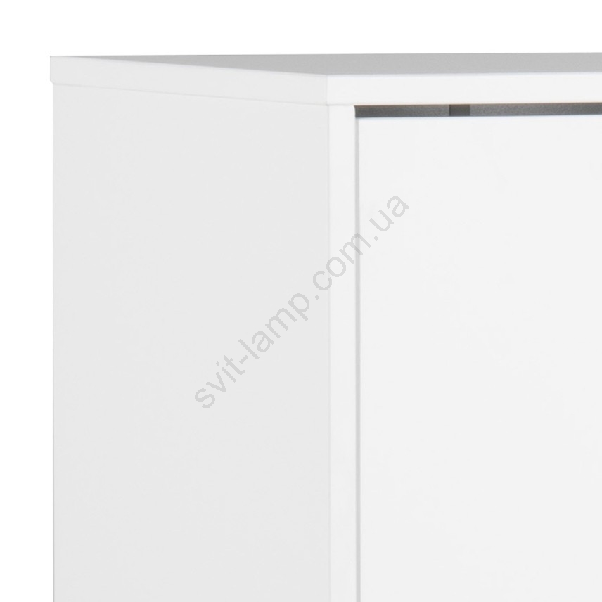 Верхняя панель, каркас и 3 ящика выполнены из МДФ с UV-лаком белого цвета, основание из дуба с NC-лаком.