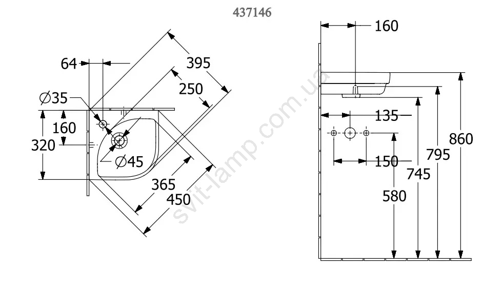 Villeroy & Boch 43714601 - Угловая подвесная раковина SUBWAY 3.0 32x32 cm керамика/белая