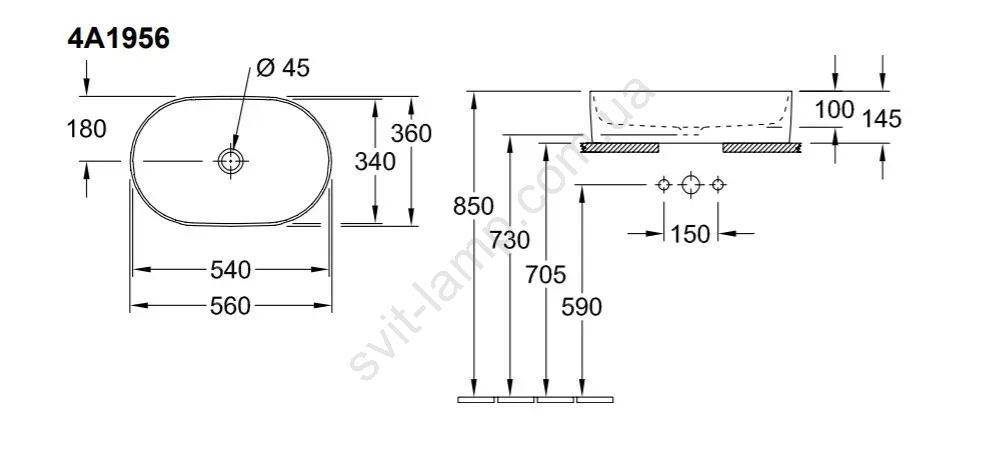 Villeroy & Boch 4A195601 - Накладная раковина COLLARO 56x36 см керамика/белая