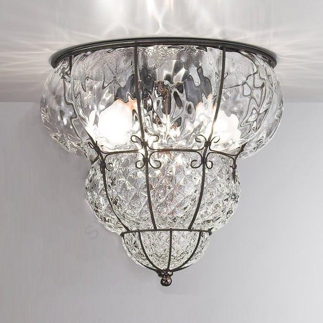 SIRU - Стельовий світильник CLASSIC 3xE14/40W/230V діаметр 25 см прозорий/чорний венеціанське скло