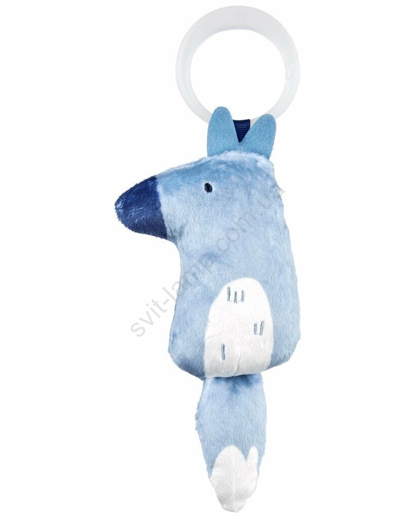 • В комплекті 5 підвісних іграшок - металева музична зірка з тактильними стрічками, плюшева ковдра/килимок, єнот-брязкальце з прорізувачем, вовк з дзвіночком та білосніжна сова з брязкальцем.