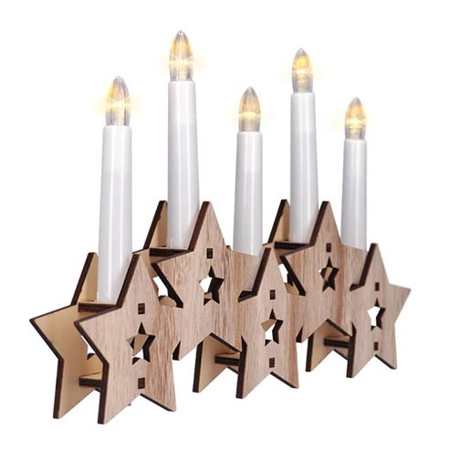 • Дерев'яний свічник з п’ятьма свічками та світлодіодами теплого білого світла.
