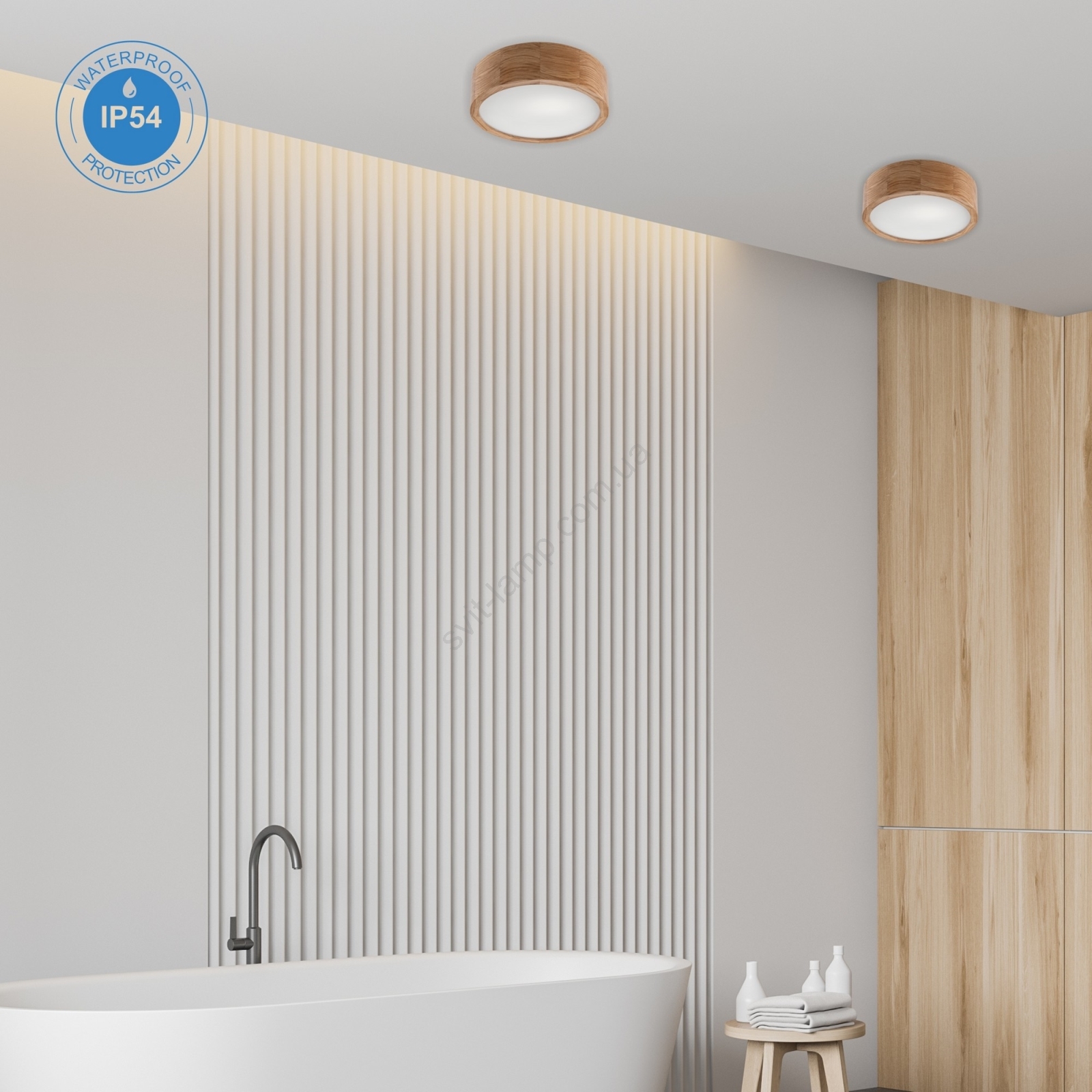 Стельовий світильник для ванної кімнати OAK, 2xE27/15W/230V, IP54, дуб, діам. 27 см