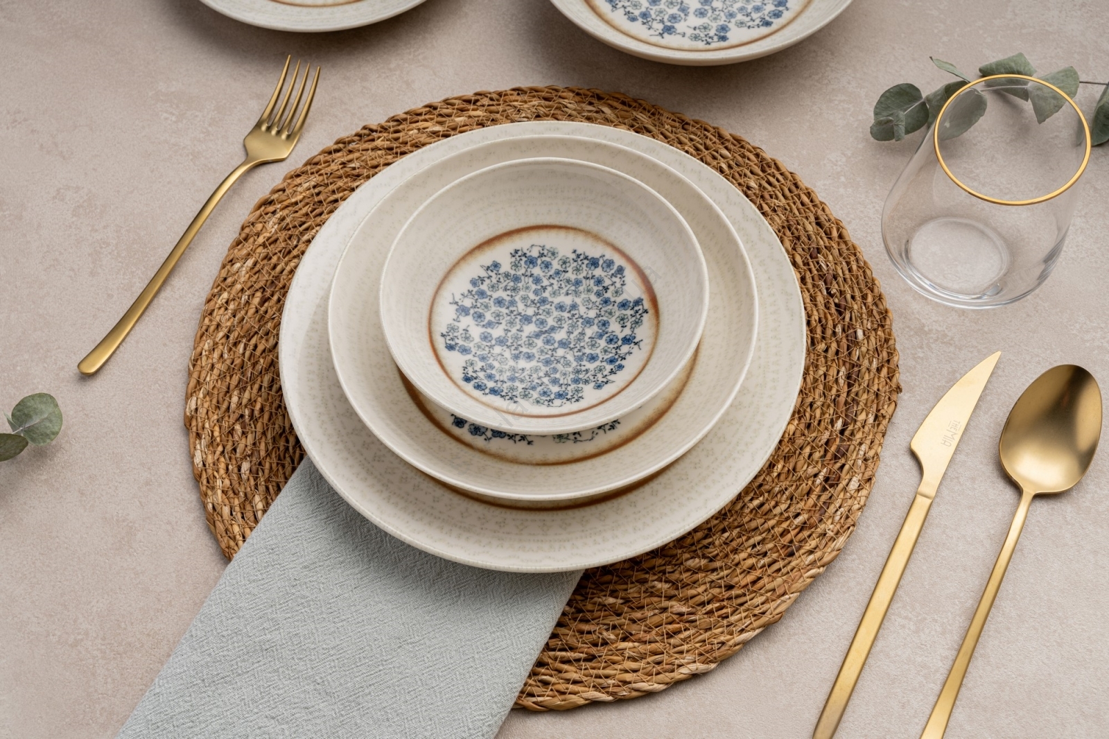 Столовий сервіз, 24 предмети, синій/бежевий, фарфор