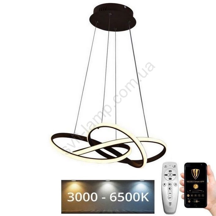 • Світлодіодна регульована люстра на тросі LED/65W/230V 3000-6500K діам. 48 см коричнева + дистанційне керування