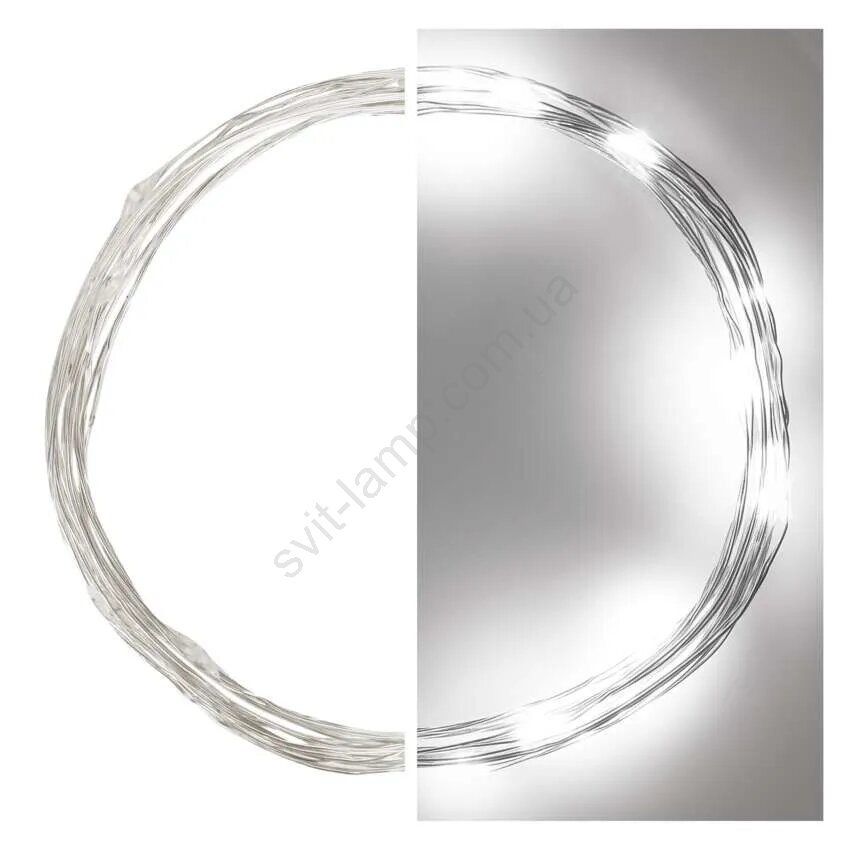Світлодіодна гірлянда — 20 світлодіодів, живлення 2×AA, довжина 2,4 м, холодне біле світло