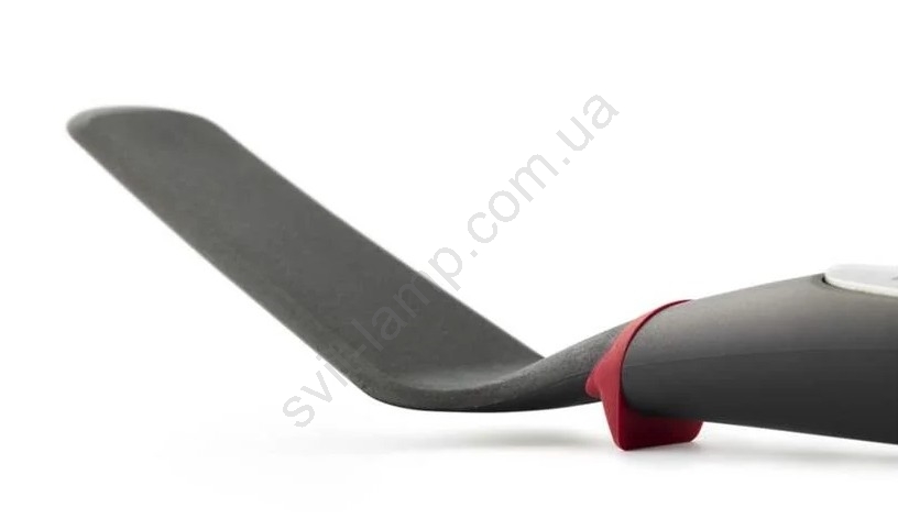 На ручці розташоване червоне силіконове кільце, що дозволяє залишати лопатку на краю гарячої сковороди або каструлі.