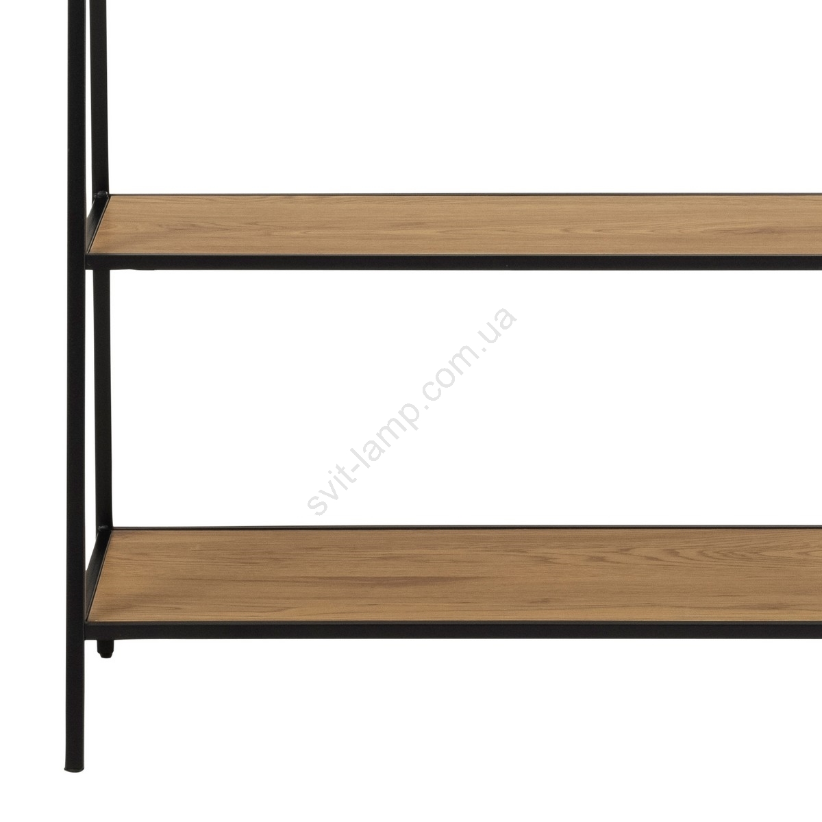• Рама матова чорна шорстка сталь, покрита порошковою фарбою, 2 полиці та підстава матовий грубий крафт зі штангою для одягу.