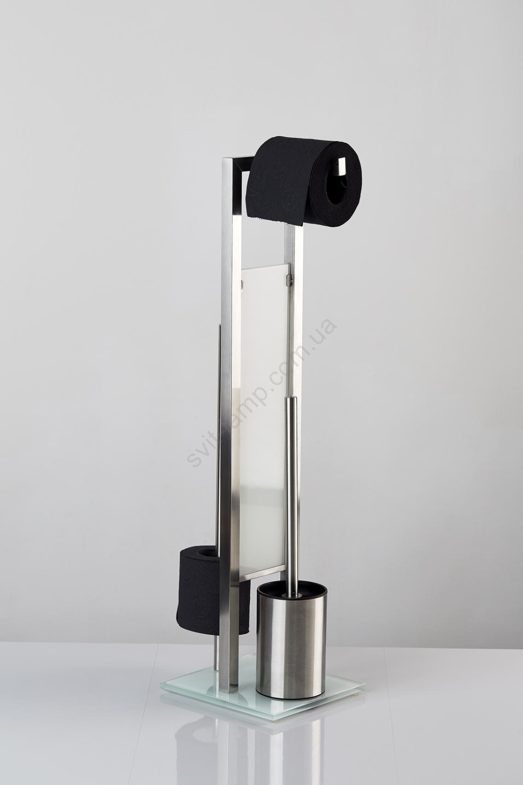 • Практична комбінація 3 в 1 – тримач для туалетної щітки, тримач для туалетного паперу та відсік для запасних рулонів.