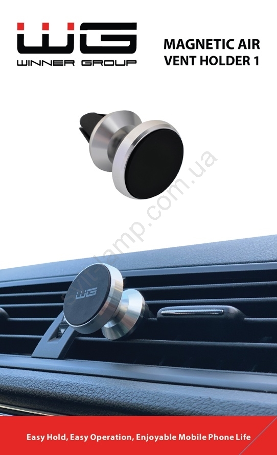 • Універсальний магнітний тримач, який легко вставляється у вентиляційну решітку вашого автомобіля.