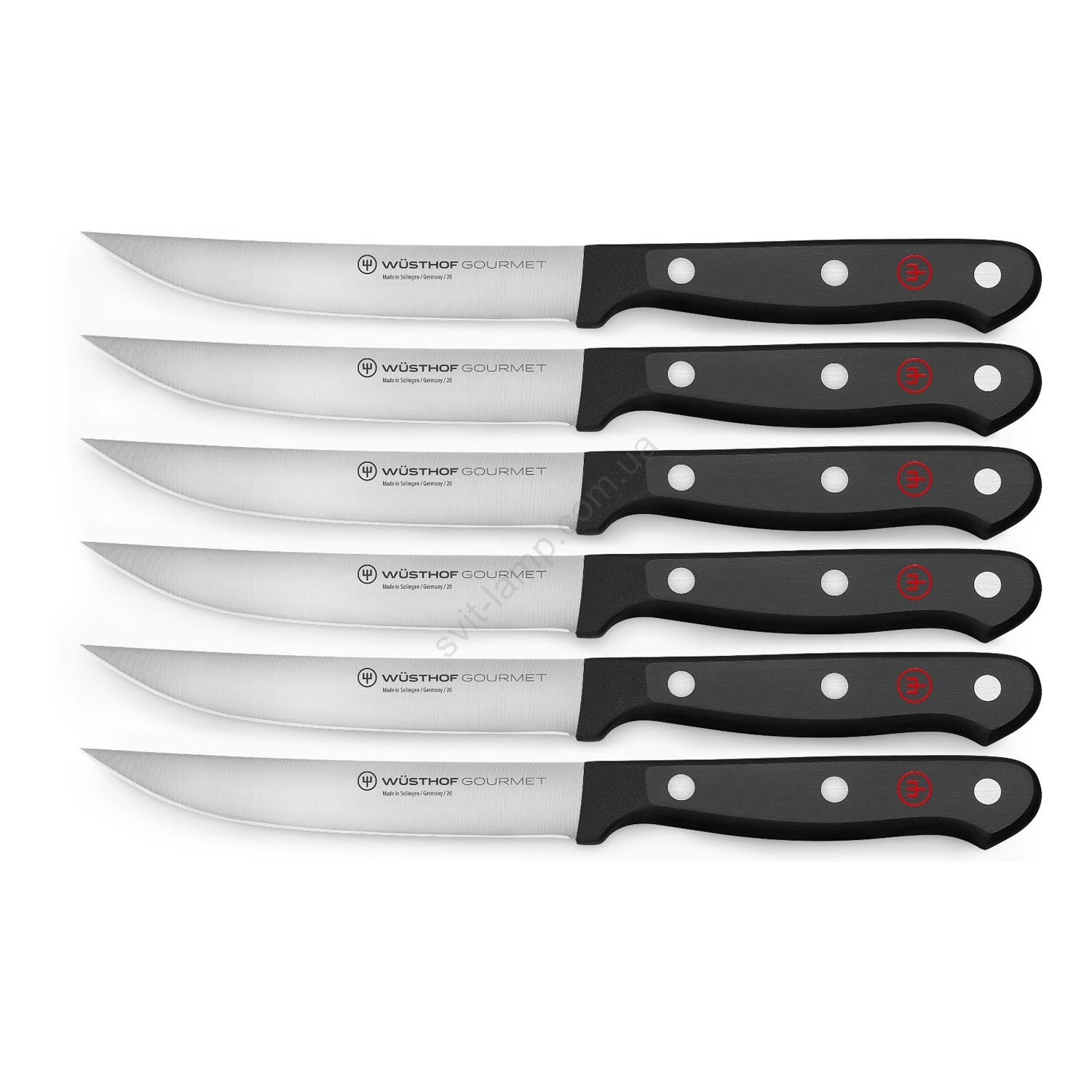 • У наборі 6 ножів для стейків із зазубреними лезами.